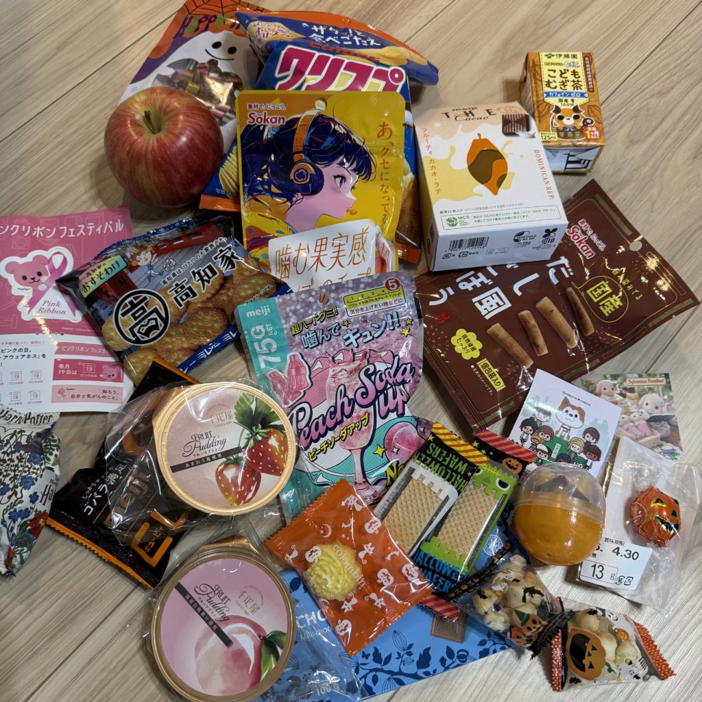 帰宅後、袋からお菓子を全部広げてみると…大量のお菓子がドーン!🤣