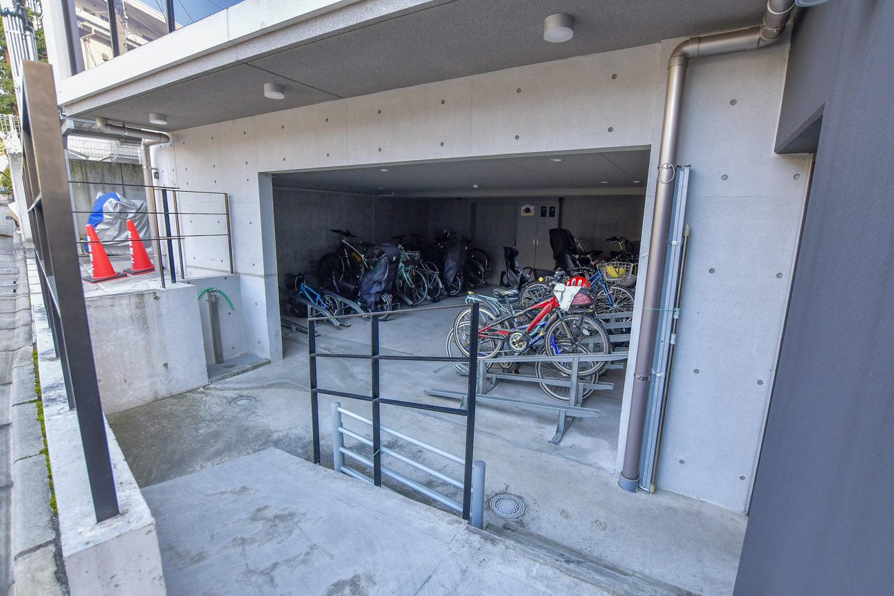 躯体内に駐輪場、レール式ですのでキチンと整頓されてます。