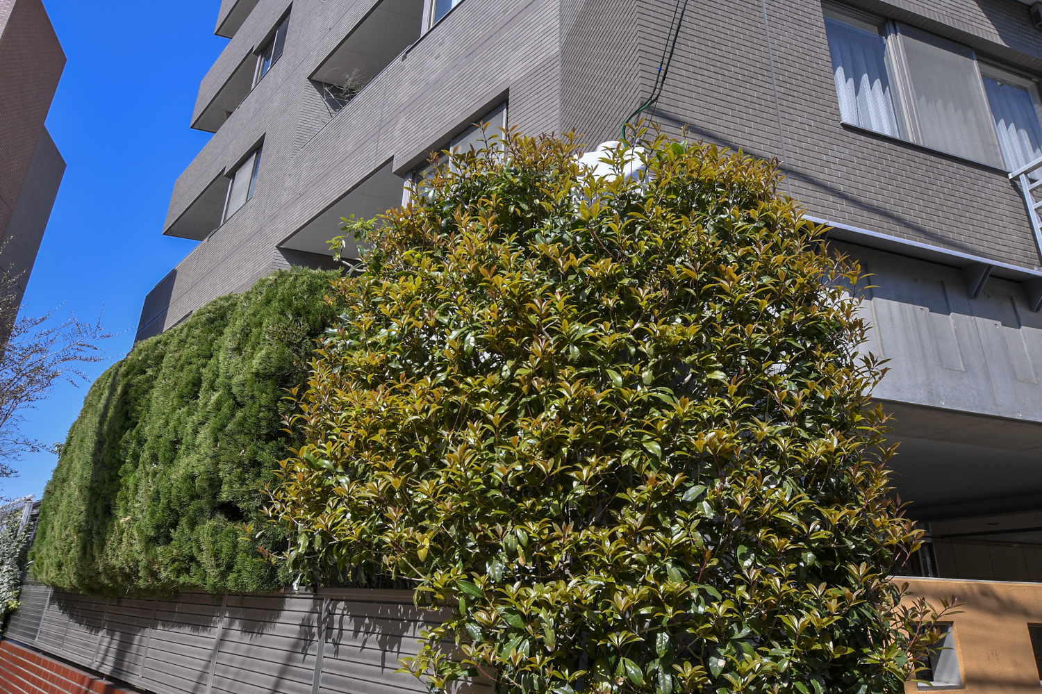 - 立派な生垣です、低層階のプライバシーも確保!そして管理の良さも窺えます。