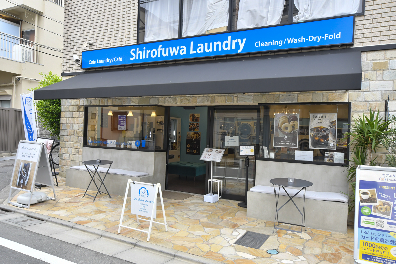 一瞬カフェに見えますがなんとコインランドリーです!なんと待ち時間にコーヒーやドーナツが楽しめるカフェコーナーがあります。これは面白い!
