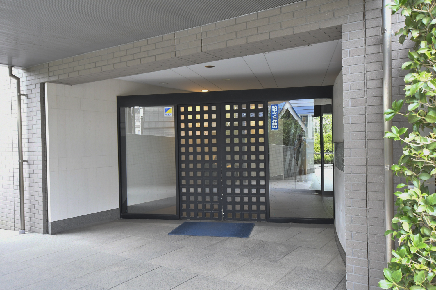 開口部も広く見通しの良い入り口です。格子状の自動ドアもお洒落です。