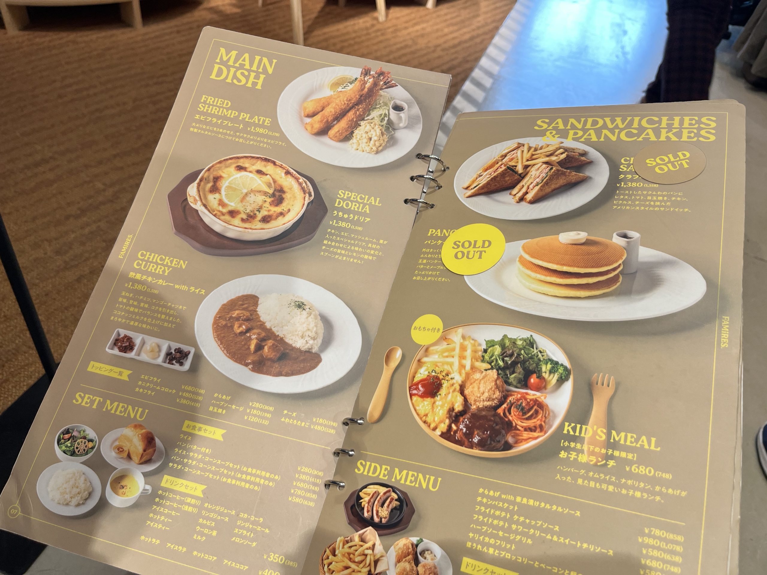こちらはミシュランガイドに掲載されているレストラン「sio」監修のファミリーレストランです。(「sio」は5年連続ミシュランガイドに掲載されているようです。すごい!)