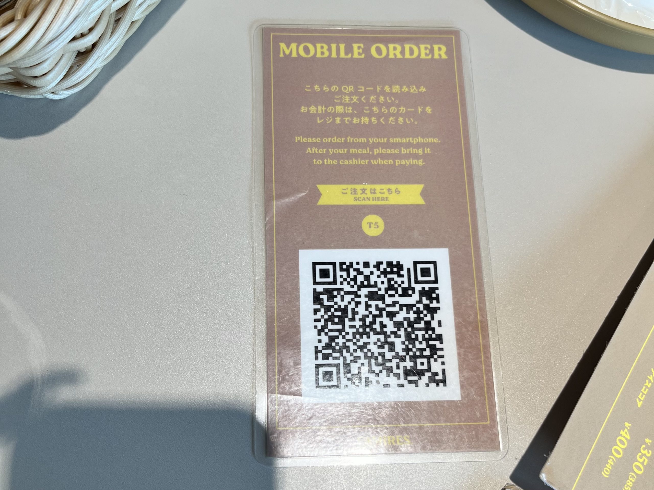 オーダーはスマホでモバイルオーダー方式です。