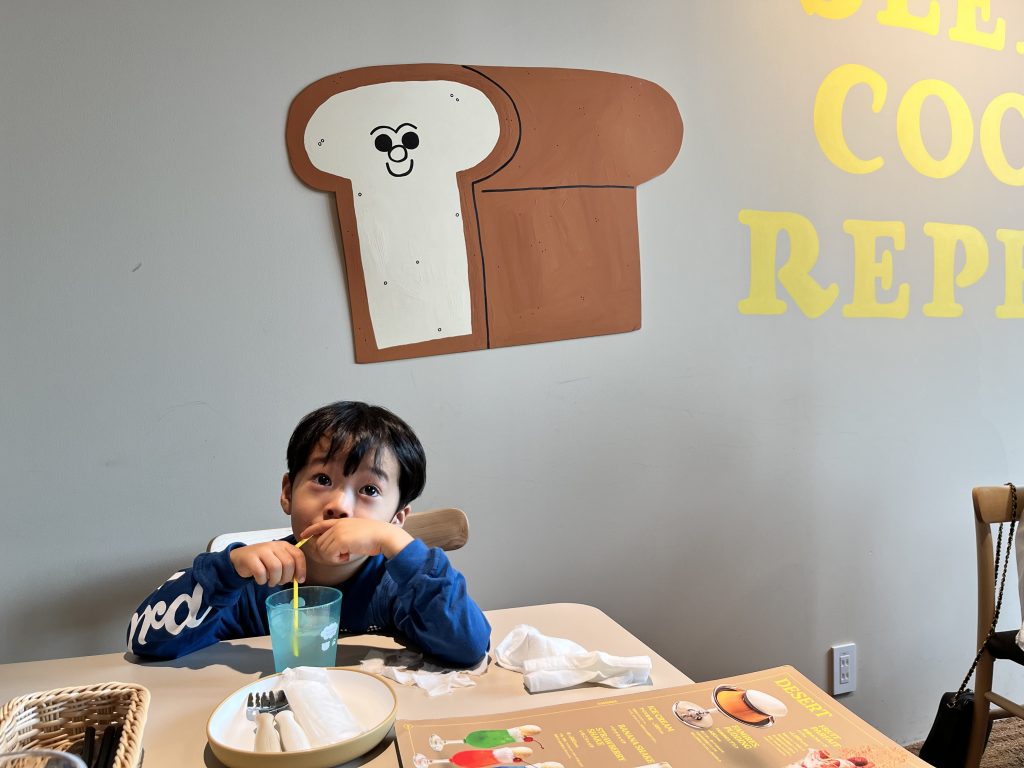 程よい苦味のアイスラテでホッと落ち着くお味で、息子くんがお子様ランチとおもちゃに夢中になってる間、休憩☕️です。笑