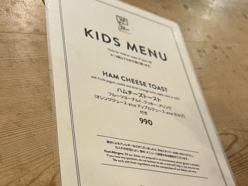 席に着くと店員さんがメニューを持ってきてくださり、その中にありましたキッズメニューを息子くんはセレクト