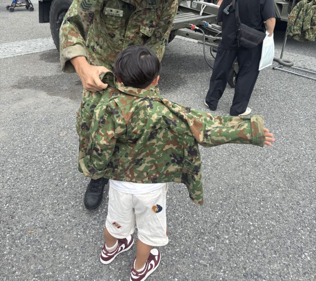 車内は想像以上に装備がしっかりしていて、「こんなふうに人を守るんだな」と実感できました。しかも、自衛隊の服を着せてもらって写真撮影まで。子どもはもちろん、私もついテンションが上がってしまいました。
