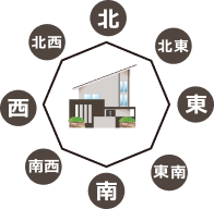 - 住宅地の区画された土地を購入するケースでは、どの方角に位置するかが日当たりを左右します。